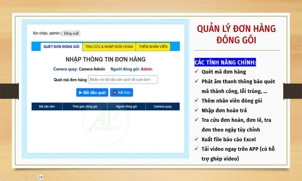 Khác với camera thông thường chỉ ghi hình liên tục, phần mềm này cho phép liên kết video với mã vận đơn, nhân viên và thời gian đóng gói. Nhờ đó, mọi thao tác đều được kiểm soát chặt chẽ và dễ dàng kiểm tra khi cần thiết.